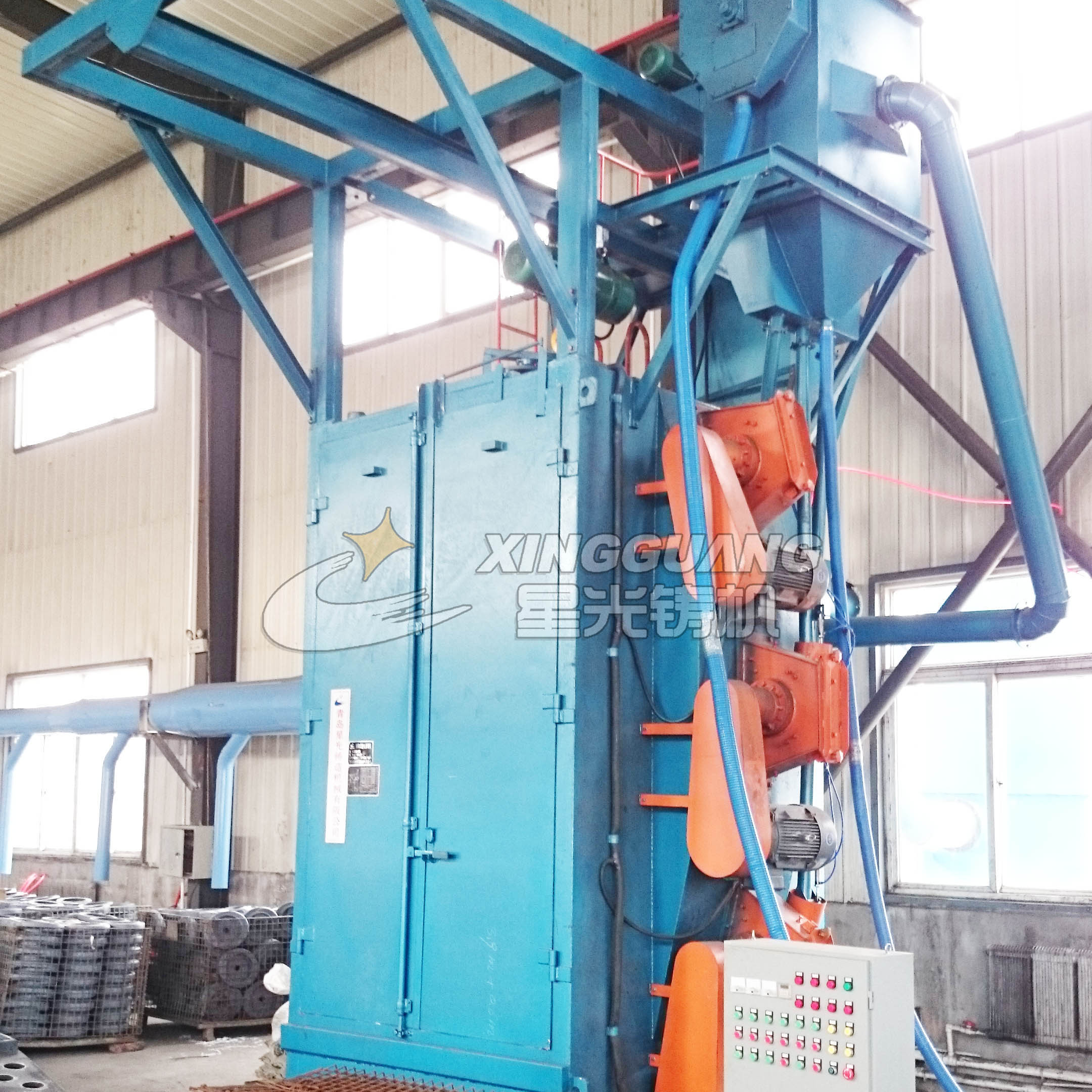 吊鉤式拋丸機分為單吊鉤和雙吊鉤,由吊鉤將工件送入清理室內,利用拋丸器將拋丸彈向工件,高速運轉之下,打磨掉工件所有部位的粗糙面,使得工件變得美觀,同時又增強工件的壓應力?!?/p>
